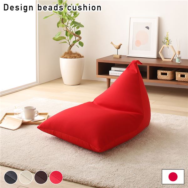 ビーズクッション ソファ レッド 三角 背もたれ 軽量 取っ手付き クッション 1人掛け ファブリッ